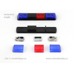 Precizní maják Tesla AZD 530 v měřítku 1:43 určený pro modely aut Veřejné bezpečnosti, Policie ČSFR a ČR, hasičů a dalších bezpečnostních sil. Profesionální výrobek zhotovený tlakovým vstřikováním plastů do kovových forem. Rotátory světel majáku jsou pochromované metodou vakuového pokovení. Set se skládá z 9 dílů:- 2 ks transparentní barevný kryt majáku-...